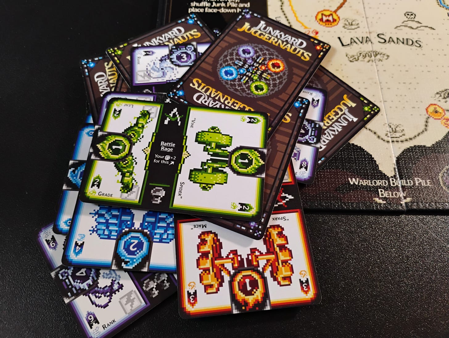 Draft cards from the Junk Pile i.e. the "junkyard" - getting the arms and legs to build your Juggernaut.